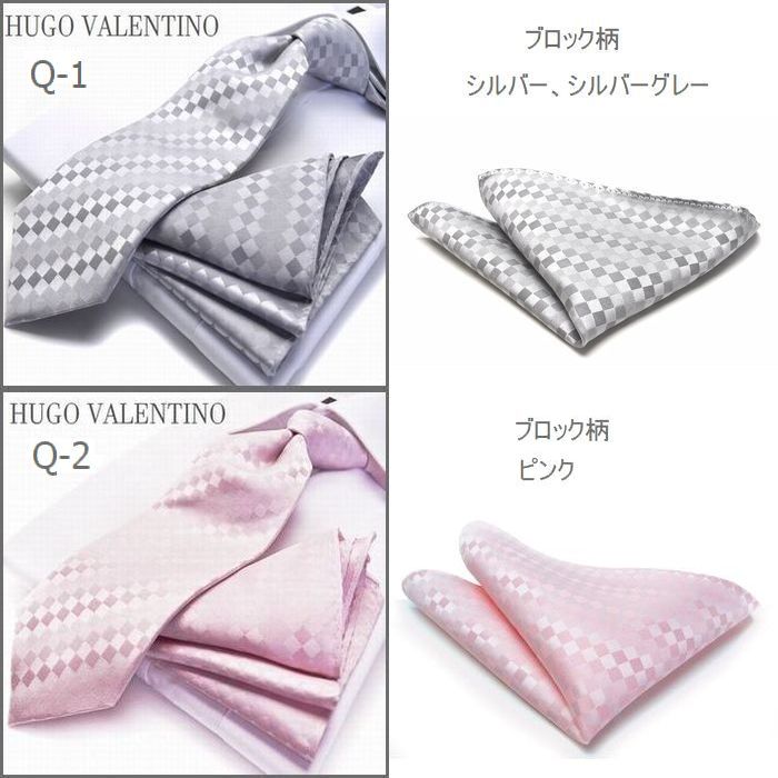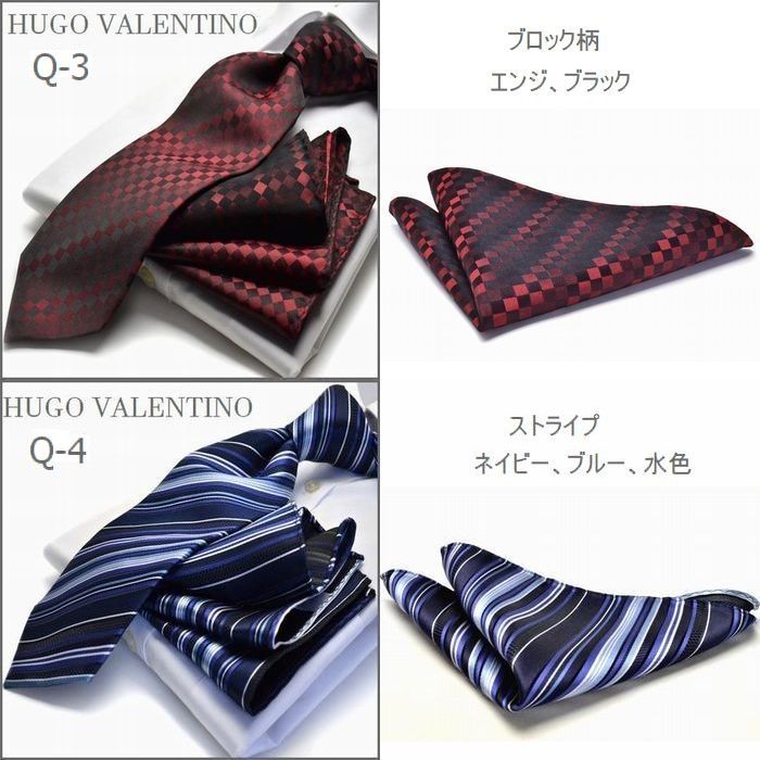 ギフト プレゼント※通常より長いネクタイです。 超ロングチーフ付ネクタイ/(158cm丈)(8.5cm幅)HUGO VALENTINO/c-lon-SET-/Q/