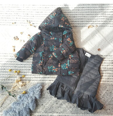 花柄パディングジャケット+フリルベスト2点セット/ダウンジャケット/アウター/長袖/コートー【子供服/キッズ/韓国子供服/子ども服/CHUMCHUM/チャムチャム】【90/100/110/120/130】【メール便不可】